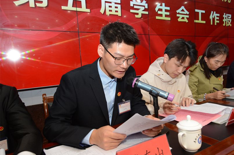 院学生会执行主席詹东山代表beat365中文登录入口第五届学生会作工作报告,从思想引领、服务学生成才、校园文体活动、青年权益维护、组织改革等方面总结回顾了工作成果,并对未来工作作出规划和展望。之后,校学生会主席团成员彭浩代表校学生会致贺词。