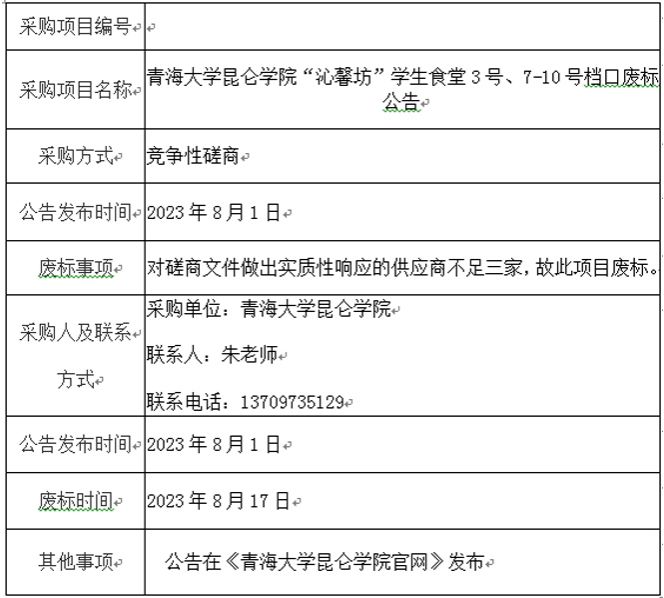 beat365中文登录入口“沁馨坊”学生食堂3号、7-10号档口废标公告