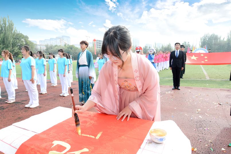 9点整,伴随着激昂的运动员进行曲,国旗队步履矫健地通过主席台,拉开了开幕式序幕。随后,彩旗队、各专业代表队依次通过主席台,用自己的专业特色,展示专业风貌并接受师生的检阅。全体人员肃立、奏唱国歌,由学院退役复员大学生组成国旗护卫队,护送国旗、升国旗一次深刻的爱国主义教育徐徐展开。副院长田志华为本次运动致开幕词,她首先代表学院党政领导和全体师生对运动会的召开表示热烈的祝贺。她说,发展体育运动是全面贯彻党的教育方针,加强大学生素质教育,促进学校体育运动广泛开展的重要举措。希望全体运动员以最佳状态投入比赛,遵守体育道德、遵守竞赛规则,团结协作,顽强拼搏,胜不骄、败不馁,赛出风格,赛出水平,尊重裁判,尊重观众,全面展现当代大学生蓬勃向上的时代风采和精神风貌,取得运动成绩与精神文明双丰收。希望全院上下共同努力,把本届运动会办成文明、热烈、精彩、圆满的大会。随后,裁判员代表樊小云老师和运动员代表丁旭同学进行了庄严宣誓。