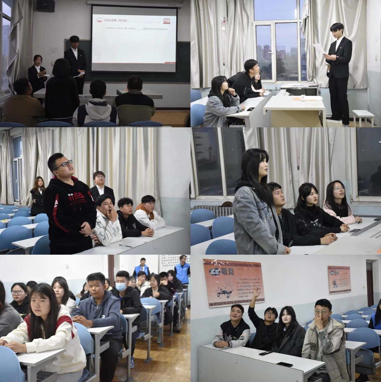 10月25日晚18时,本次党团知识竞赛决赛在致明楼各教室拉开帷幕,决赛形式为现场答题,由学生团总支书记韩勇和宣传部委员徐浩源分别担任主持人,将12支队伍分为两两一组进行对抗,在致明楼501教室和507教室同步进行。